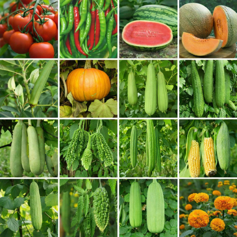 Our product portfolio, as presented in our catalog, includes a wide range of hybrid and open-pollinated vegetable seeds such as watermelon, muskmelon, cucumber, bitter gourd, sponge gourd, ridge gourd, bottle gourd, tomato, chilli (hot pepper), sweet pepper, brinjal, okra, pumpkin, marigold, sunflower, tinda, radish, amaranthus, and leafy vegetables. Each variety is selected and developed with a focus on early maturity, uniform fruiting, superior quality, transportability, and high yield potential